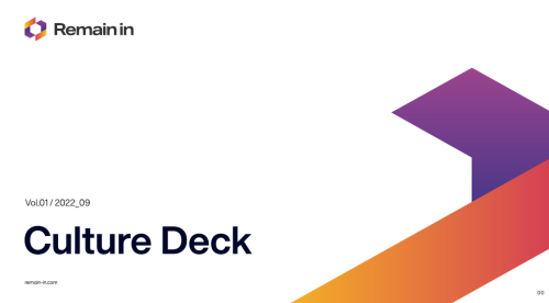 現在の私たちは物語の序章にいて、思想と組織のあり方に共感を持つ人を求めている状況です。 すべての固定観念を捨てて、Remain in を理解していただきたい、その思いを「カルチャーデック」に表現しました。